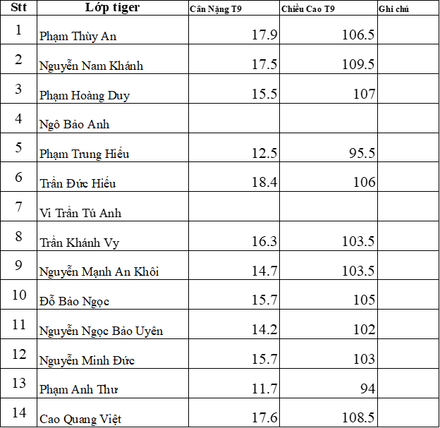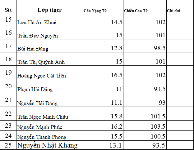 THÔNG BÁO CHIỀU CAO CÂN NẶNG 9/2025